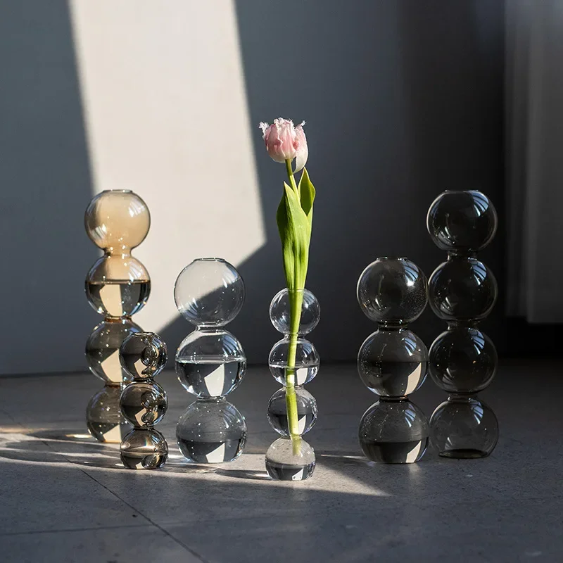 Glass Flower Vase Nordic Style Glasses For Plants Transparent Bubble Glass Flower Vases Flower Pot Home Decor Table Ornaments